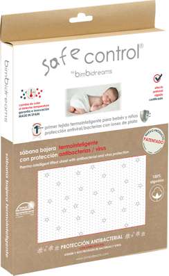 Safe Control® thermo-inteligentní prostěradlo je vyrobeno s inovativním termochromatické tiskovou technikou, která mění barvu, když se u dítě projeví první příznaky horečky. Vyrábí se také s antimikrobiální a antivirovou složkou na bázi SILVER IONS (BeSo®GUARDED).