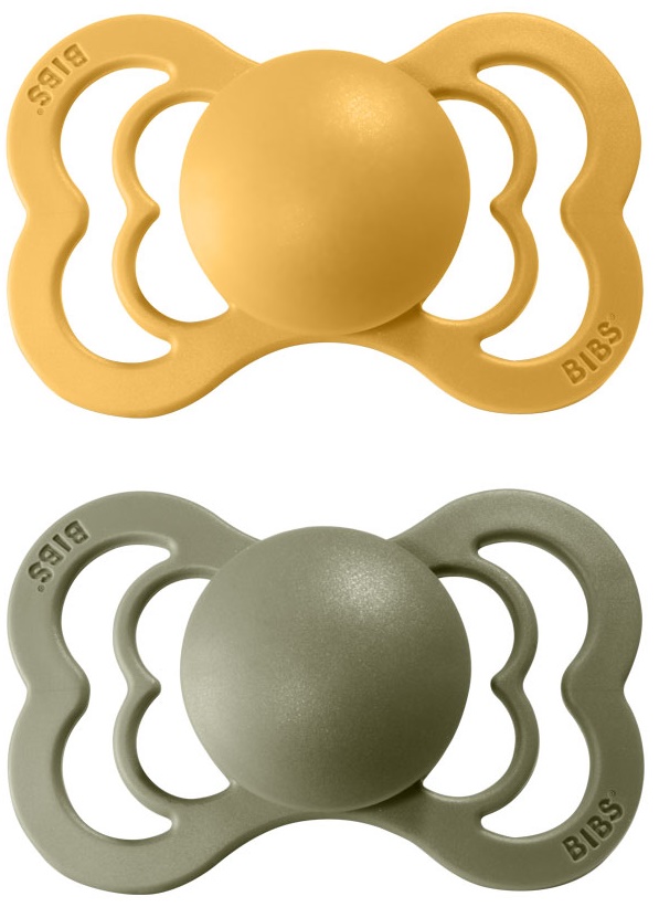 BIBS Supreme symetrické dudlíky z přírodního kaučuku 2ks 3-18m Honey Bee/Olive