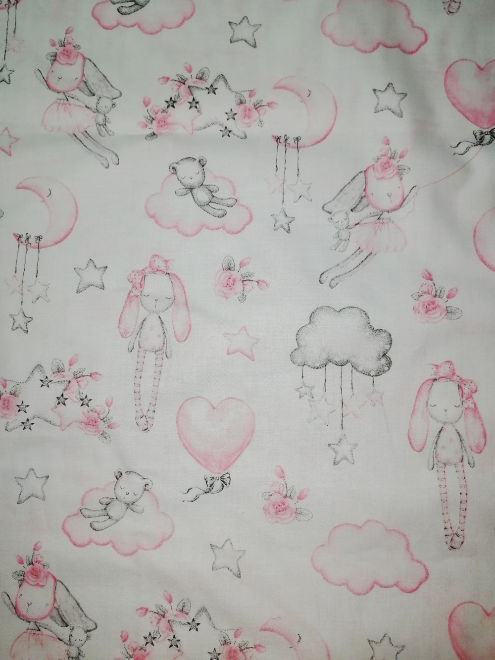 Bavlněné plátno s motivem zajíček s medvídkem š.160cmSkladem 3 bm135 Kč/ bm112 Kč bez DPH