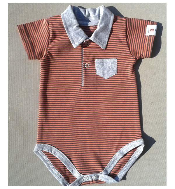 Bavlněné proužkované kojenecká body kr.rukáv s kapsičkou a límečkem.