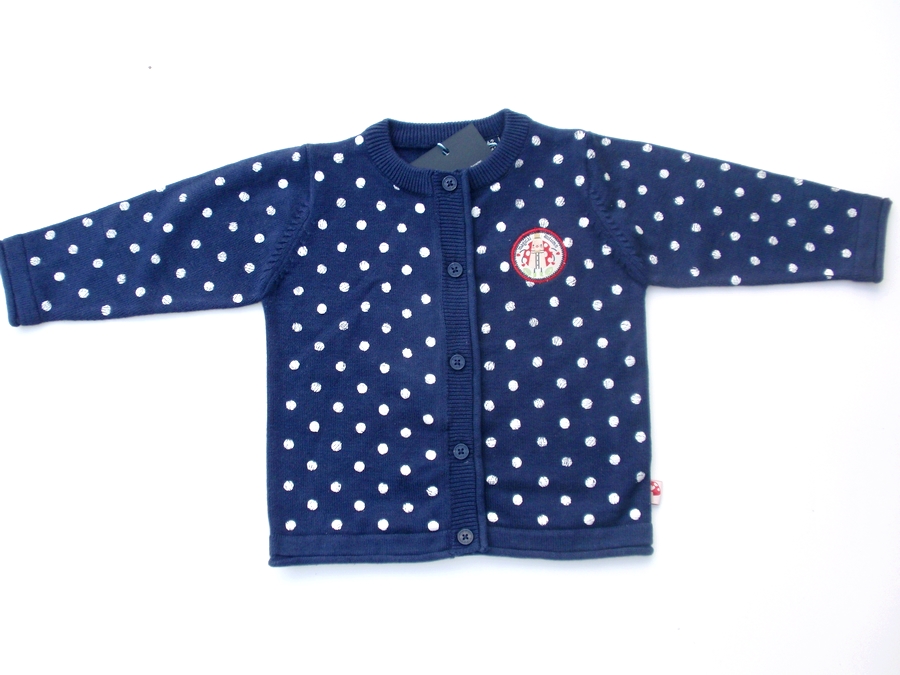 Dívčí svetr značky Blue Seven s puntikami. Zapínání je na knoflíčky.