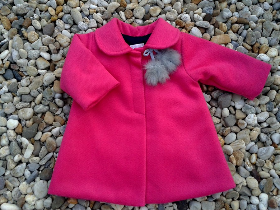 Elegantní kabátek s kožešinovými bambulkami malinový zn. BarnabaSkladem 1 ks655 Kč/ ks541 Kč bez DPH