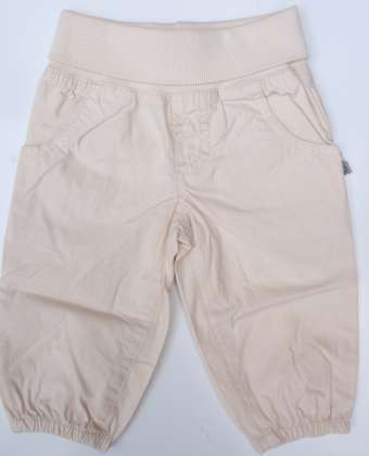 Překrásné béžové kalhoty z vysoce kvalitního materiálu. Kalhoty jsou vyrobeny z čisté 100% bavlny a vyznačují se jemnou strukturou. Ve vrchní části maji široký, měkký pás pro pohodlné nošení. V předním díle i na zadním díle kalhot jsou všity kapsy. Nohavice jsou ukončeny do gumy.