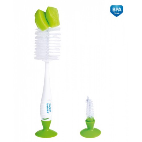 Speciálně tvarovaný kartáč je určen na čištění láhví a dudlíků před jejich sterilizací. Kartáč se skládá ze dvou částí – kartáče na čištění láhví a kartáčku s přísavkou na čištění dudlíků, který je vložen do rukojeti kartáče. Kartáček se z rukojeti vyjímá pootočením koncovky s přísavkou doleva. Přísavka umožňuje stabilní postavení či zavěšení kartáče s kartáčkem. Umožňuje bezpečně a důkladně očistit i jinak těžko přístupná místa v láhvi. Malý kartáček slouží k odstranění zbytků potravy z dudlíku. Po vyčištění dudlíku se vždy ujistěte, že jste dudlík nepoškodili. Nezapomeňte láhve a dudlíky čistit vždy bezprostředně po krmení dítěte.
