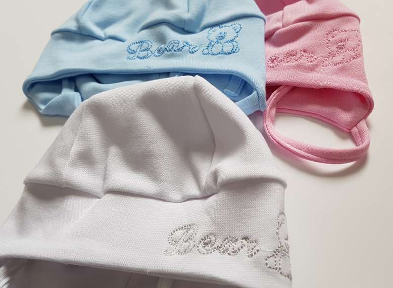 Kojenecká čepice s výšivkou vel. 32-34 (3 barvy)centrální sklad138 Kč/ ks114 Kč bez DPH