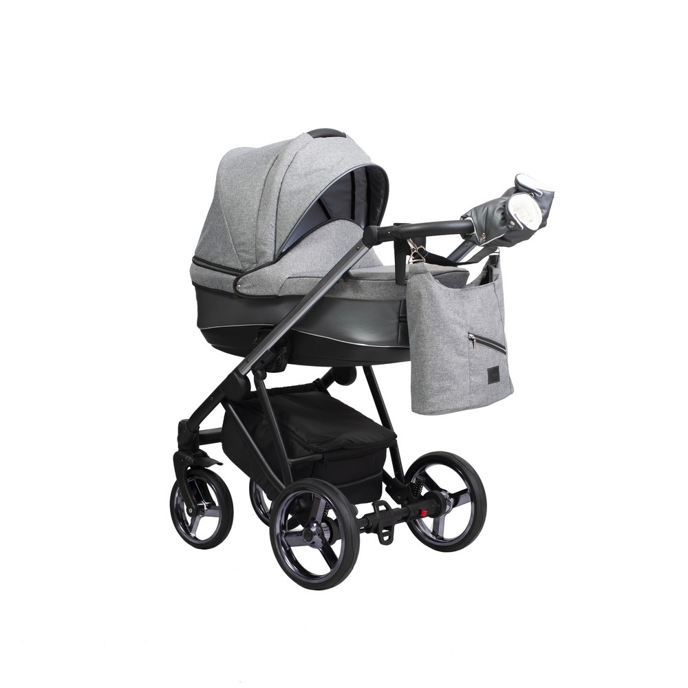 Rám podvozku je vyrobená z hliníku a má designový vzhled. Barva antracit. Kočárek má čtyři gelová kola. Dvě přední kola jsou aretovací - uzamikatelná. Rukojeť je potažená kvalitní eko kůží, která je lepená a nepřetáčí se. Pomoci kloubů si můžete nastavit výšku rukojeti. Prostorný košík si můžete pomoci zipu uzavřít a zaručí dostatek místa, pro vaše osobní věci. Kočárek se brzdí centrální nožní brzdou.