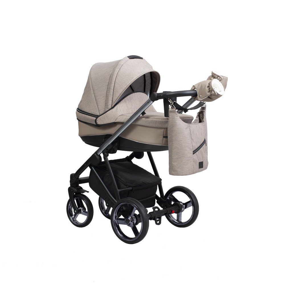 Rám podvozku je vyrobená z hliníku a má designový vzhled. Barva antracit. Kočárek má čtyři gelová kola. Dvě přední kola jsou aretovací - uzamikatelná. Rukojeť je potažená kvalitní eko kůží, která je lepená a nepřetáčí se. Pomoci kloubů si můžete nastavit výšku rukojeti. Prostorný košík si můžete pomoci zipu uzavřít a zaručí dostatek místa, pro vaše osobní věci. Kočárek se brzdí centrální nožní brzdou.