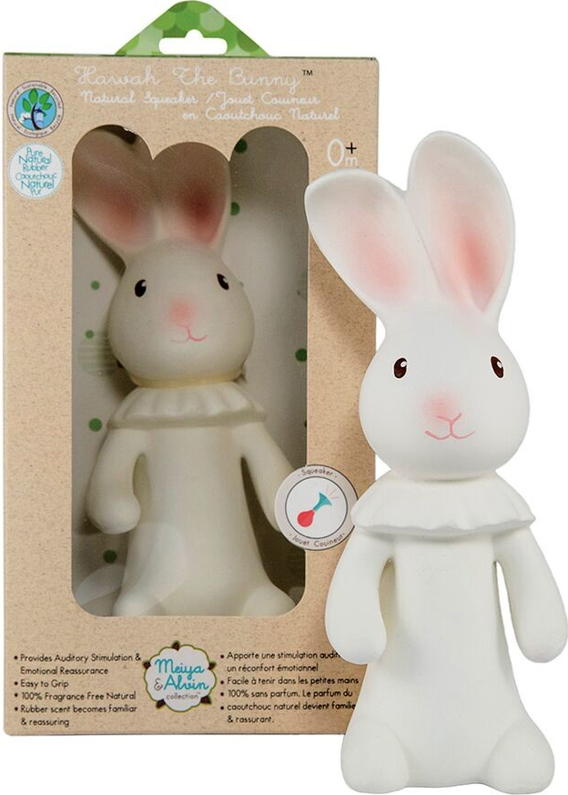 Postavička z kolekce Meiya & Alvin je vyrobena z přírodní gumy z kaučukového stromu Hevea a kombinuje v sobě užitek zvukové stimulace pískátka a gumového kousátka, které je ideální pro děti, kterým se právě prořezávají zoubky. Jedinečná vůně a chuť přírodní gumy je u dětí velmi oblíbená. Měkčí i tvrdší části a výstupky masírují dětské dásně a přinášejí úlevu a uklidnění. Vytvářením zvuku děti objevují své smysly a učí se základní lekce jejich vlastní aktivity a následné reakce.