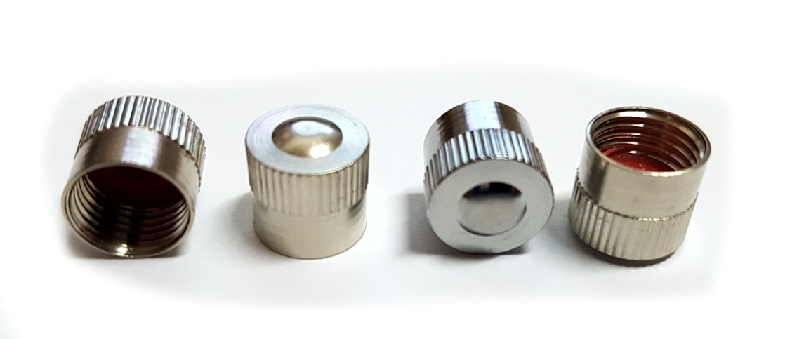 Exklusivní tuningová hliníková (odlehčená) šroubovací sada krytek ventilku kočárku s těsnící gumou.