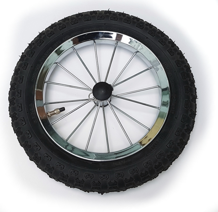 Kolečko se dodává kompletní, smontované včetně středů, dvou kuličkových ložisek, pláště, duše.