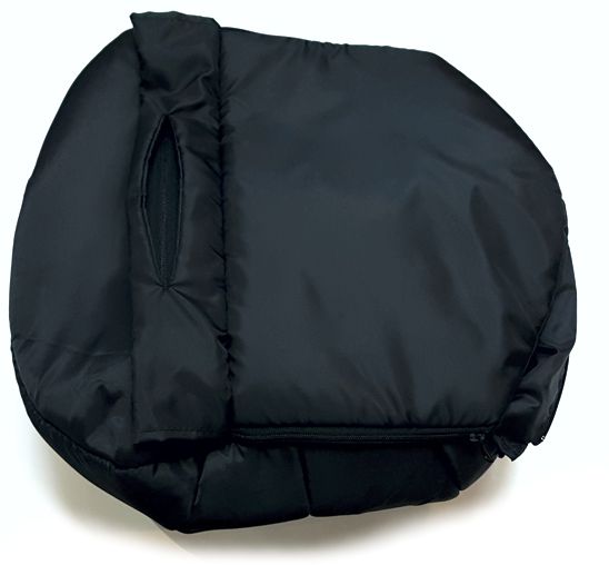 Lehce omyvatelný s originálními úchyty a zipy a stříbrným lemováním. Barva černá PPE.