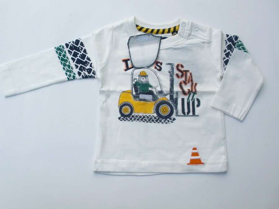 Tričko s dlouhým rukávem bílé barvy s aplikací auta. Zapínání na ramínku na dva cvočky.