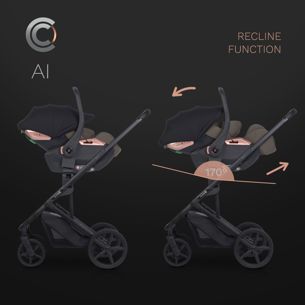 AI autosedačka od CAVOE má funkci sklopení do lehu (až do úhlu 170°), takže při upevnění na podvozek kočárku můžete dítě položit do lehu, jako v kočárku. Sedačka je nabízena s otočnou základnou ISOFIX a má nejnovější schválení ECE R129 I-SIZE.