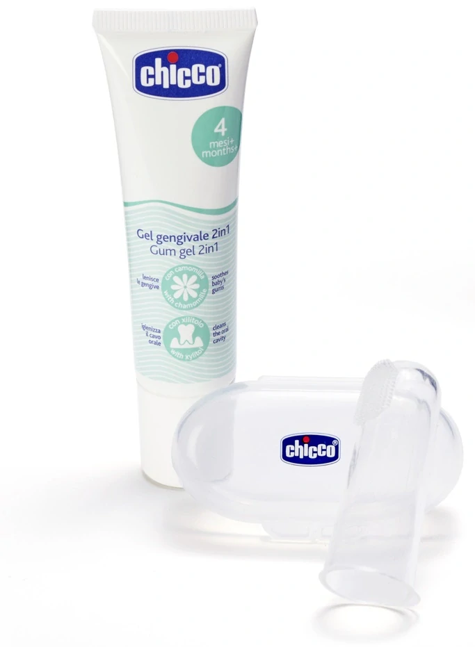 - CHICCO Set zubní uklidňující gel a kartáček na prst s pouzdrem 4m+