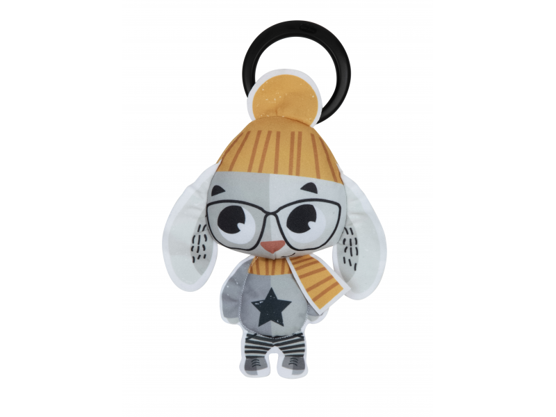 Originální chrastítko v podobě králíčka je vyrobeno z měkkého textilního materiálu. Hračka při pohybu chrastí, uši králíčka při zmáčknutí šustí. Díky plastovému kroužku je možné ji zavěsit na autosedačku či kočárek, aby mohla vaše dítě zabavit i na cestách.