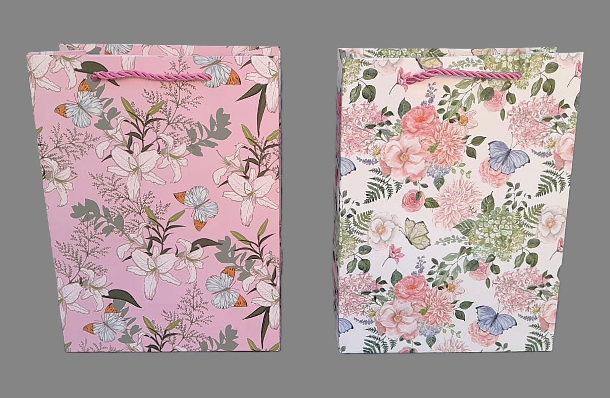 Dárková papírová taška Květiny a motýli 2 barvySkladem 2 ks36 Kč/ ks30 Kč bez DPH