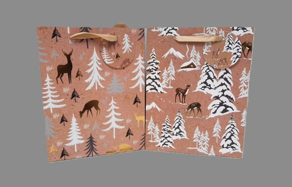 - Dárková papírová taškahnědá se stromky menší 23x18cm