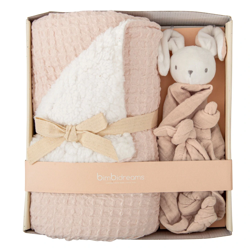 - Dárková sada BIMBIDREAMS waffle deka s beránkem + usínáček Králíček pudrově růžová