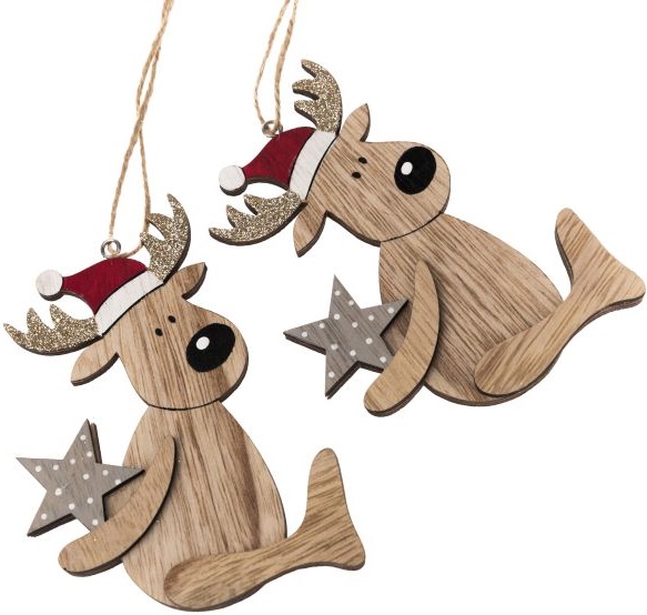 Dekorace - závěsný dřevěný sob v čepici 1ks - vel. 9×12,5×0,8 cmSkladem > 4 ks69 Kč/ ks57 Kč bez DPH