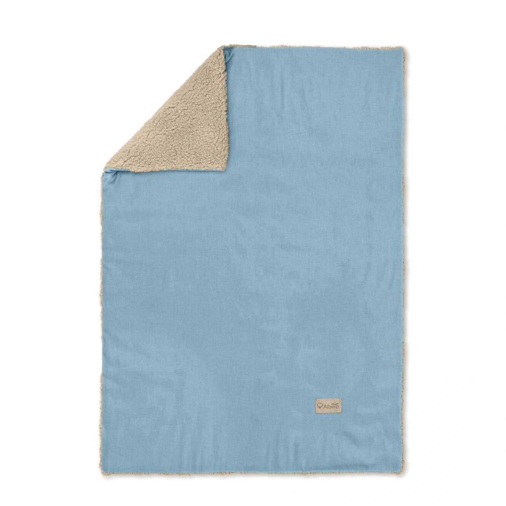- Dětská dvouvrstvá bavlněná velurová deka Albero s beránkem modrá