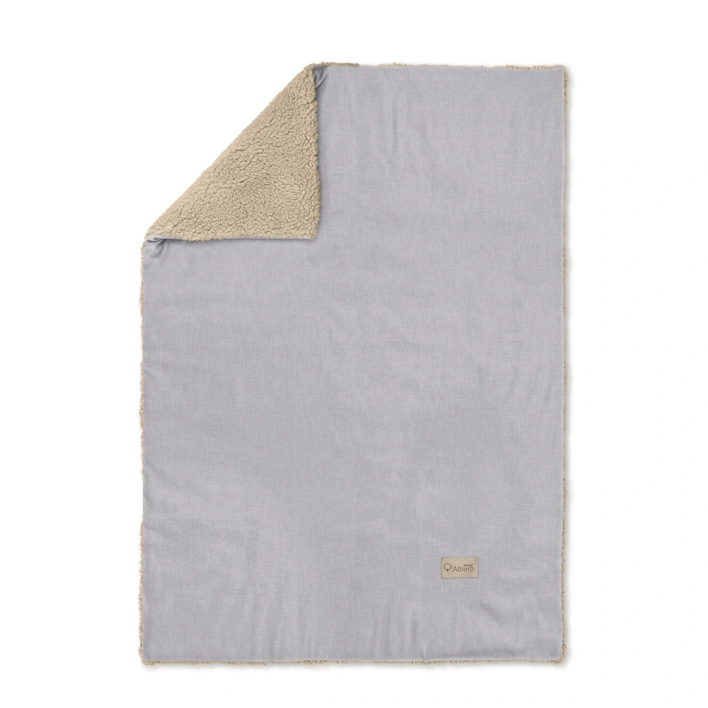 - Dětská dvouvrstvá bavlněná velurová deka Albero s beránkem šedá