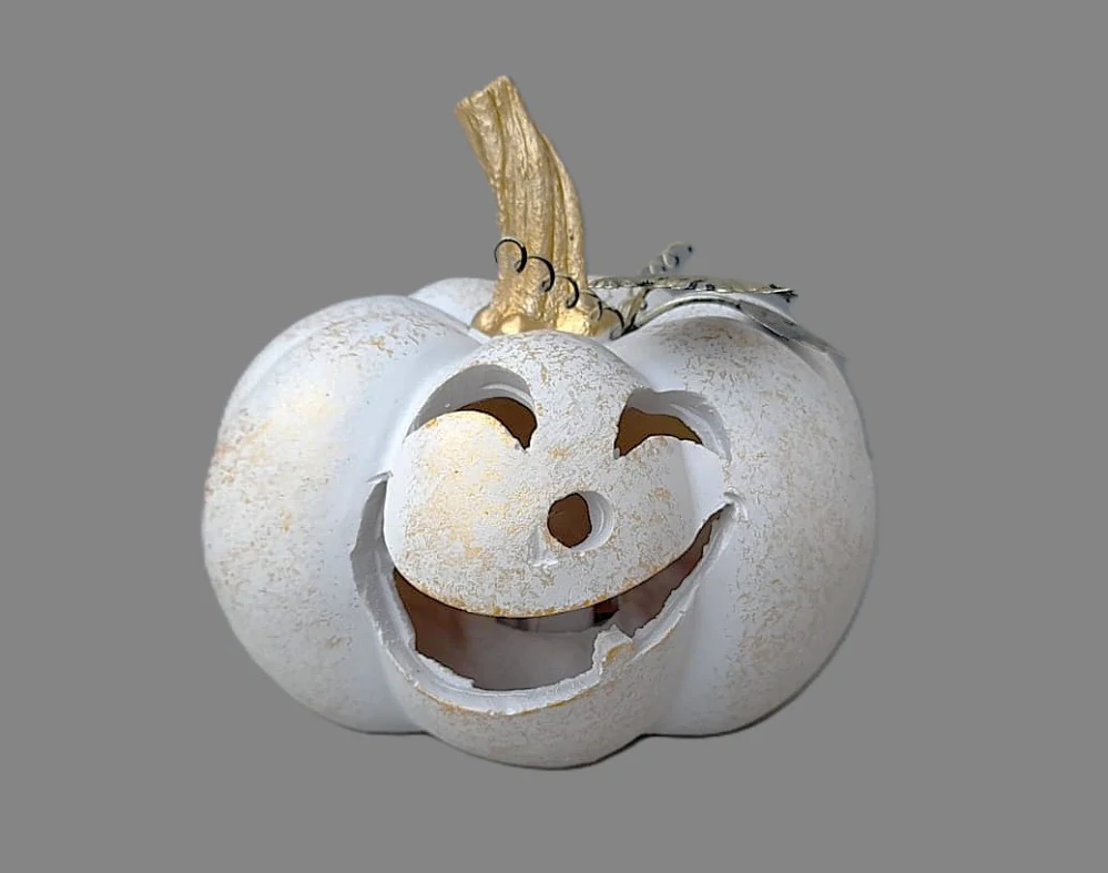 Dýně bílá zlatá stopka LED svítící 13cm