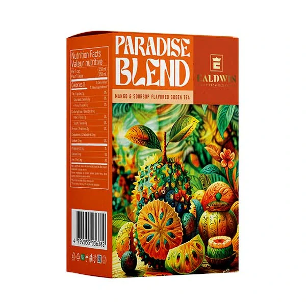 Ealdwin Paradise Blend přináší chuťový zážitek inspirovaný sluncem zalitými dálkami – spojení kvalitního zeleného čaje s jemně ovocnou příchutí soursopu (gravioly) a manga. Výsledkem je lehká, přesto výrazná směs s tropickým nádechem, která působí osvěžujícím a příjemně uvolněným dojmem. Paradise Blend je ideálním společníkem pro chvíle, kdy si chcete dopřát exotiku v šálku, aniž byste opustili klid svého dne.