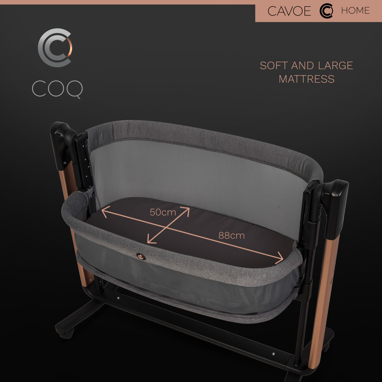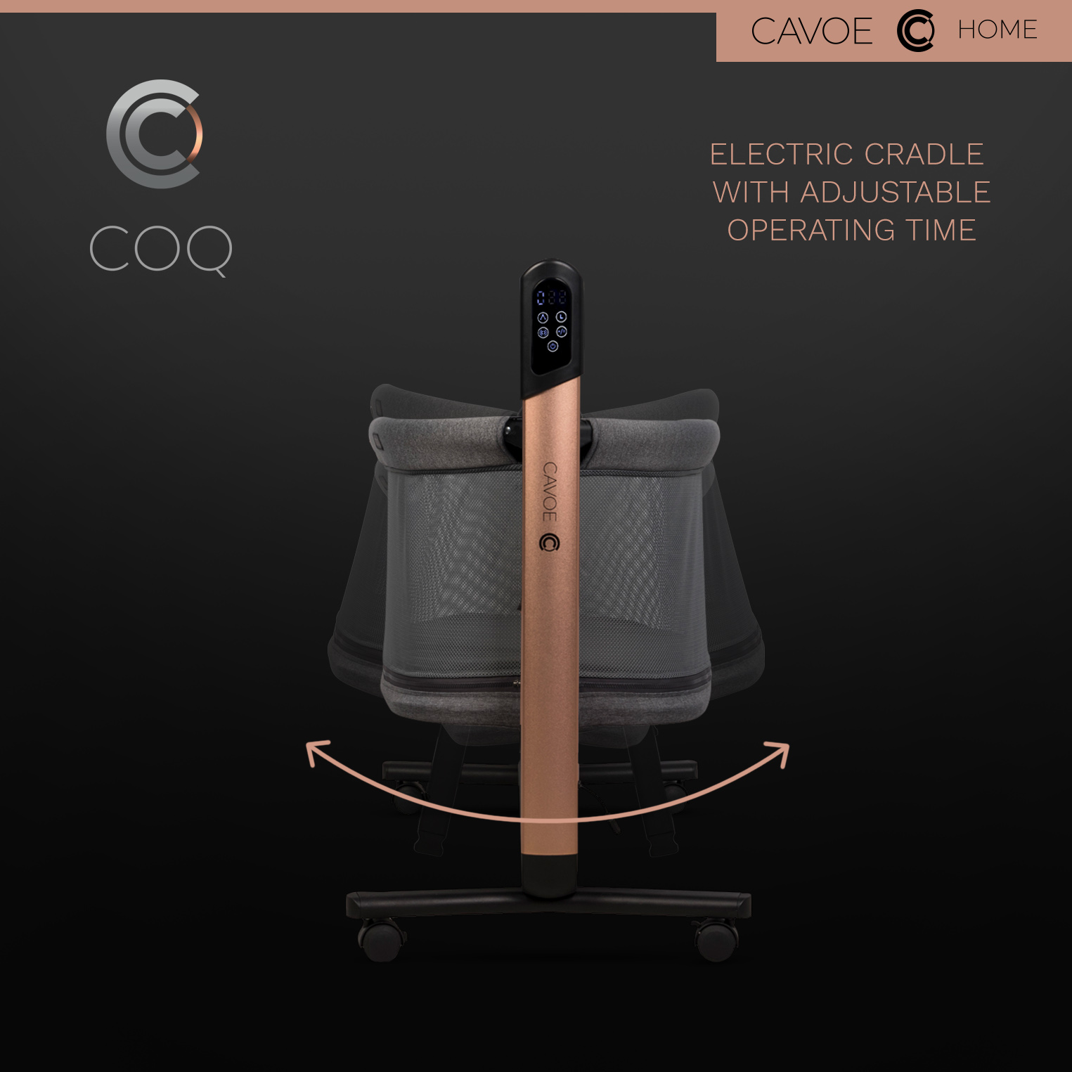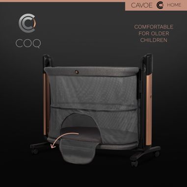 CAVOE COQ je inovativní multifunkční produkt kombinující funkční hodnoty s nejnovější technologií. COQ spojuje funkce elektrické dětské kolébky a multifunkční postele 3v1 Lze ji využít jako obyčejnou přenosnou postel, přistýlku (přistýlku) i ohrádku pro starší dítě. Jedná se tedy o SMART produkt 4 v 1. Designéři CAVOE se zaměřují na odvážný styl a moderní podobu výrobků, díky nimž COQ slouží nejen funkčním účelům, ale může být i ozdobou vašeho domova.