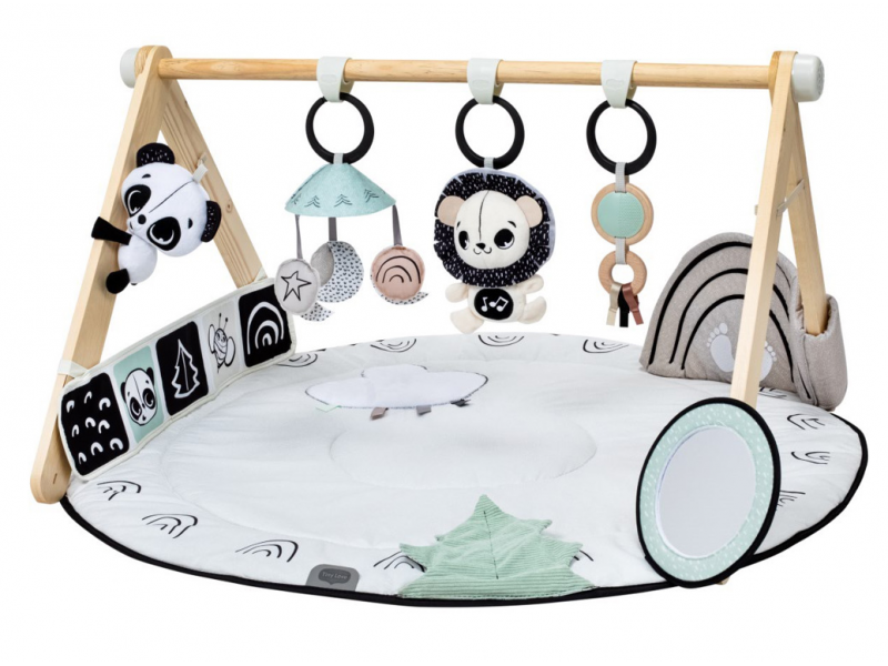 Hrací deka s hrazdou Tiny Love Black & White v luxusním provedení s dřevěnou hrazdou nabízí různorodé aktivity k zabavení a stimulaci smyslů dítěte od narození.