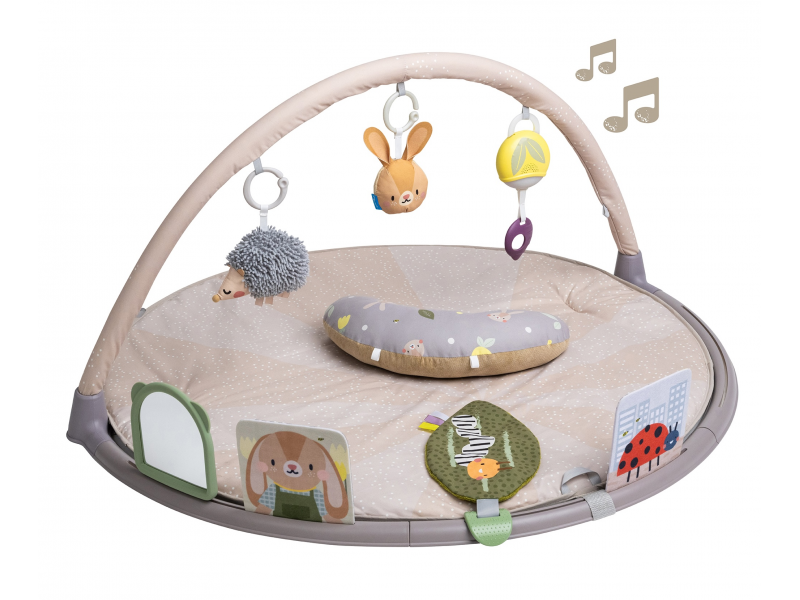 Originální odnímatelné hračky včetně bezpečného zrcátka upoutají pozornost dítěte a zajistí mu hodiny zábavy vleže na zádech, na boku i na bříšku. Speciální půlkruhová lišta po obvodu deky je určena pro umístění karet s výraznými obrázky a motivy, které společně se speciálně tvarovaným polštářkem podněcují dítě ke hře na bříšku. Vysoce kontrastní černobílé ilustrace jsou určeny pro děti od narození do 3 měsíců, ilustrace ve výrazných barvách jsou ideální pro děti od 3 měsíců. Poloha na bříšku přináší děťátku jiný pohled na svět a posiluje krční a zádové svaly, které později umožňují dítěti začít se přetáčet, lézt a sedět bez opory.