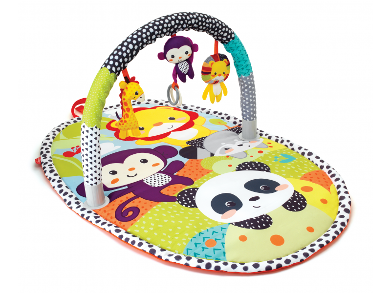 Hrací deka s krásnými ilustracemi zvířátek ze zoo. Zavěšené hračky v podobě roztomilých zvířátek lákají miminko ke zkoumání a pozorování.
