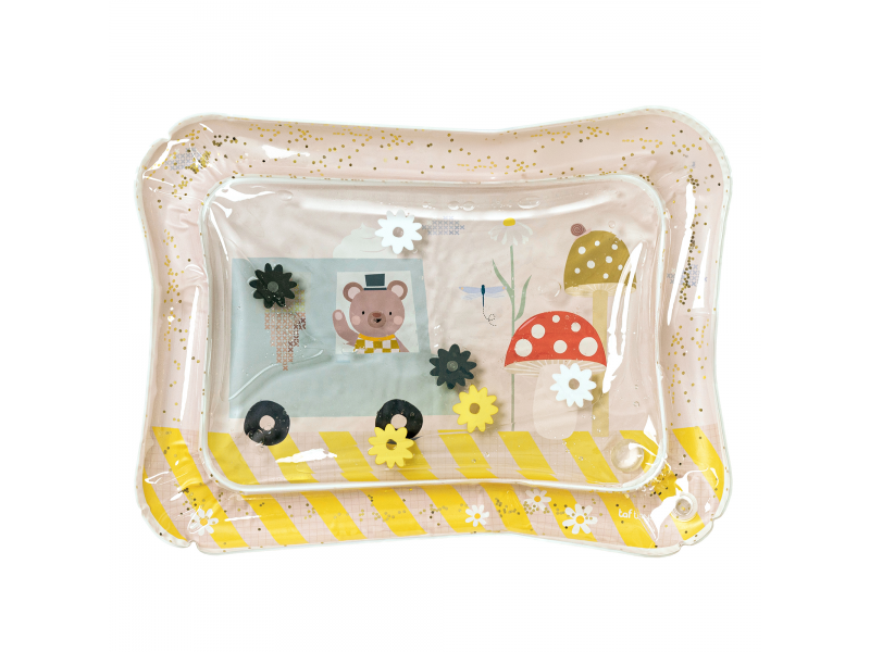 Proměňte čas na bříšku vašeho dítěte v dobrodružství plné zábavy a smyslového zkoumání! Tato měkká vodní podložka s plovoucími hračkami zaujme každé miminko a pomáhá při posilování svalů i rozvoji zraku a motoriky.