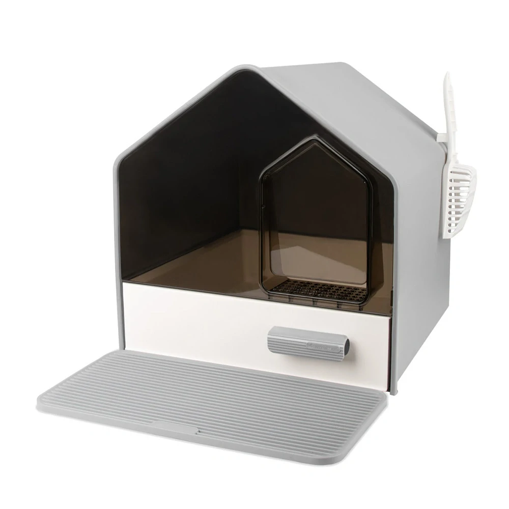 Dopřejte své kočce soukromí ve velkém stylu. Kočičí toaleta Villa View v elegantním odstínu Gentleman Grey není jen obyčejný box na stelivo – je to designový prvek připomínající moderní vilu, který se stane ozdobou vašeho interiéru.