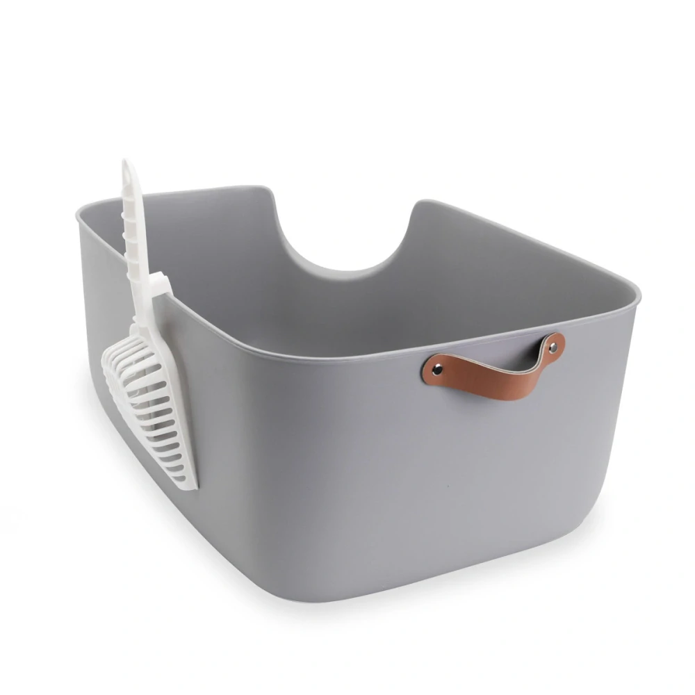 - Carinio ROH otevřená toaleta pro kočky s koženou rukojetí a lopatkou - šedá