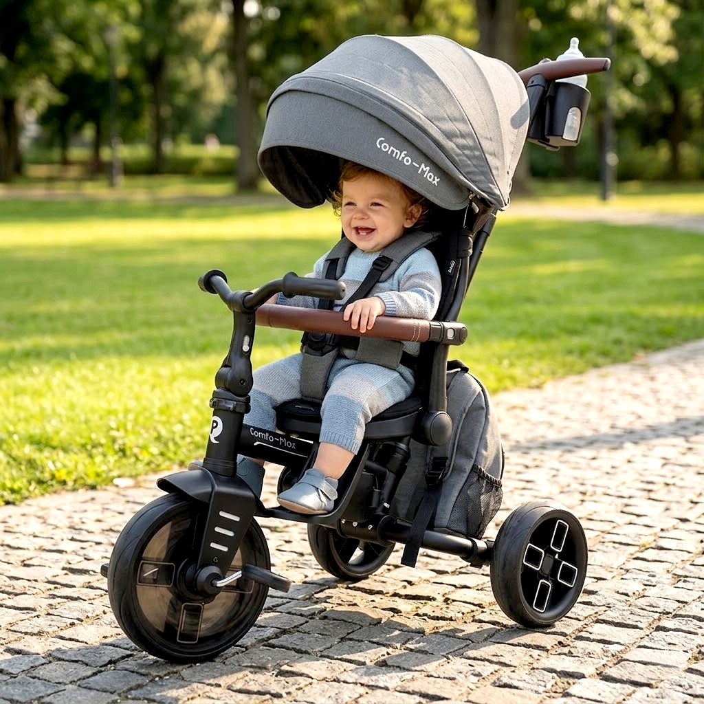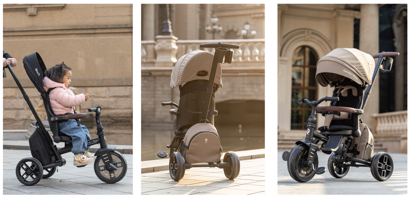 Skládací tříkolka Qplay Comfo Max – Pohodlí a styl pro děti od 8 měsíců