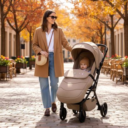 Díky nastavitelné opěrce zad (až do úplného lehu) a polohovatelné opěrce nohou je kočárek ideální i pro odpolední spánek. Prostorný nákupní koš pojme vše potřebné a rukojeť z perforované kůže dodává kočárku elegantní vzhled.