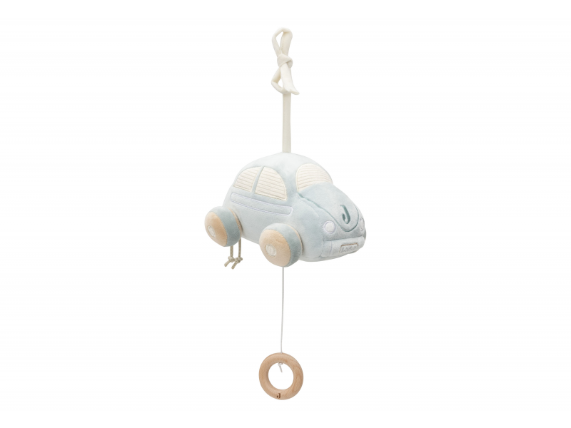 Roztomilé plyšové autíčko hraje po natažení za kroužek krásnou ukolébavku. Hračku s pomocí textilního úchytu snadno připevníte na postýlku, autosedačku, kočárek apod.