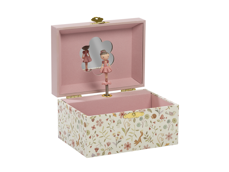 Krásná šperkovnice se zrcátkem a hudebním boxem, který po natažení hraje něžnou melodii. Vaše malá parádnice si do šperkovnice s potiskem květin může ukládat své šperky a jiné vzácné drobnosti.