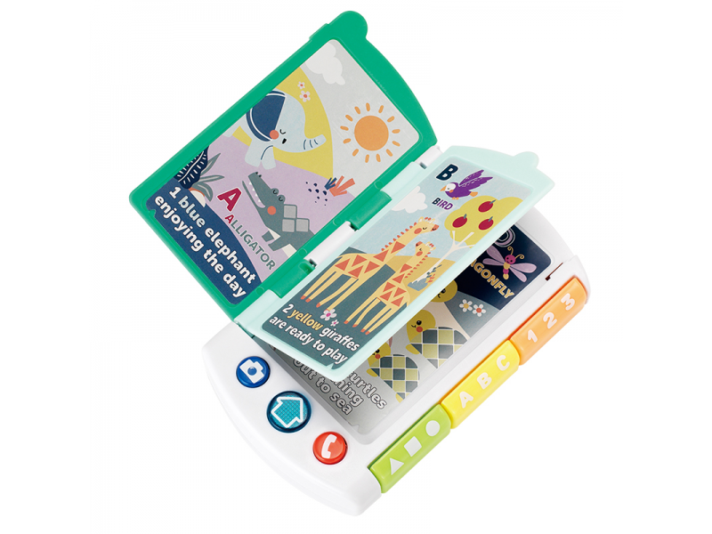 Zábavná interaktivní hračka Infantino, která spojuje telefon na hraní a malou obrázkovou knížku plnou překvapení. Na přední straně má velké zrcátko a tlačítka, se kterými si dítě může hrát na volání nebo focení. Po otevření stránek se spustí vzdělávací obsah – hračka přečte jednoduché věty a vybízí děti k objevování tvarů, barev a čísel.