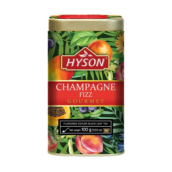 Představujeme vám čaj Champagne Fizz, který promění každý šálek v osvěžující zážitek. Tato směs cejlonského černého čaje je obohacena o kousky manga a papáji, s přírodní příchutí broskve, černého rybízu, pomeranče a jahody.