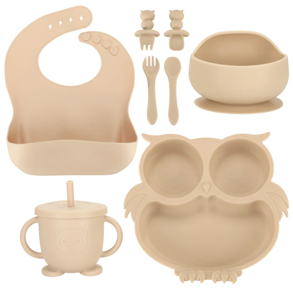 Jídelní silikonová sada 8-dílná pro děti SOVA béžová