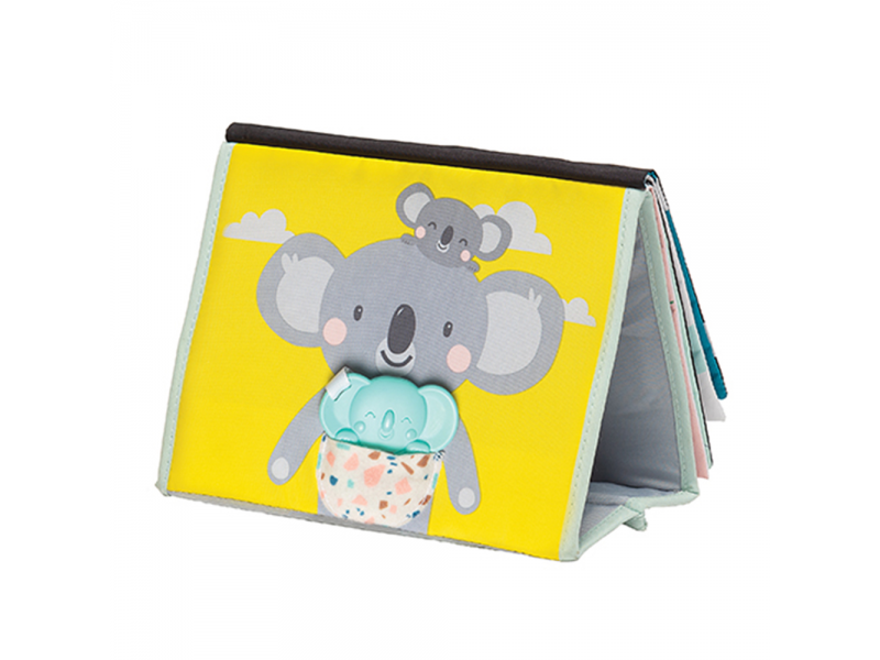 Textilní knížka s otáčecími šustícími stránkami ve tvaru stolního kalendáře nabízí množství neodolatelných obrázků s různorodými texturami, bezpečným zrcátkem, kousátkem apod. Ideální pro postavení před dítě při hře na bříšku.