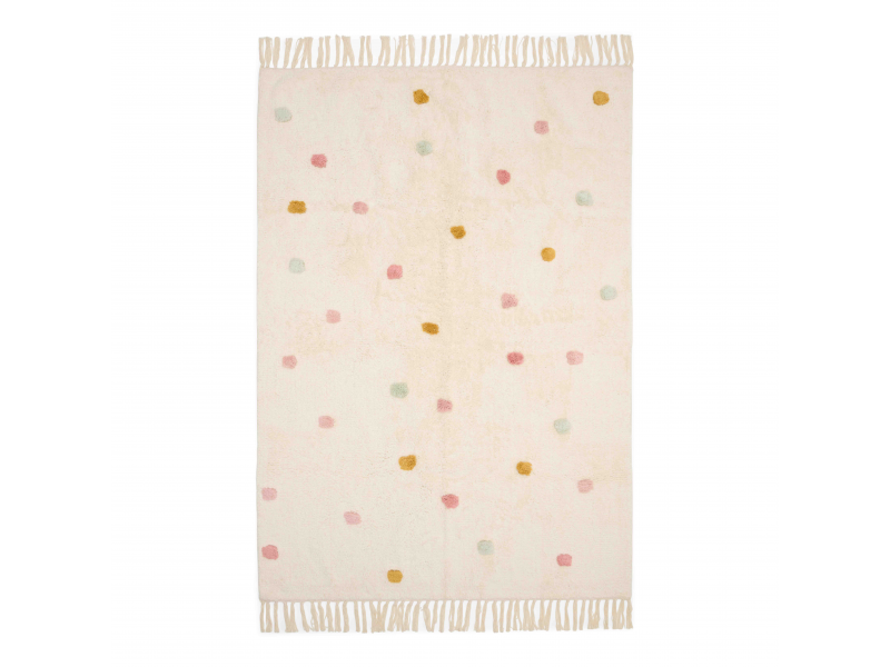 Vneste do dětského pokoje hřejivou a veselou atmosféru s koberečkem od značky Little Dutch! Koberec má béžový podklad zdobený hravými puntíky v růžové, modré a okrově žluté barvě. Třásně na kratších stranách dodávají designu útulný a originální vzhled. Vašemu dítěti se na něm bude krásně sedět a hrát si.