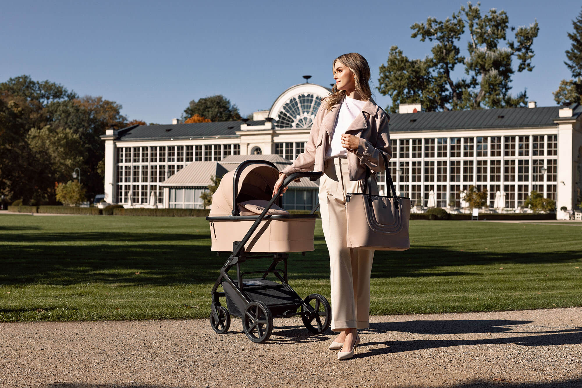 Velký nákupní košík pojme potřebná zavazadla, ale pokud potřebujete další prostor, můžete si dokoupit stylovou a praktickou tašku, která se zavěsí na vodítko kočárku. Tašku vyrábí specializovaný výrobce dámských kabelek, takže splní očekávání i těch nejnáročnějších uživatelek.