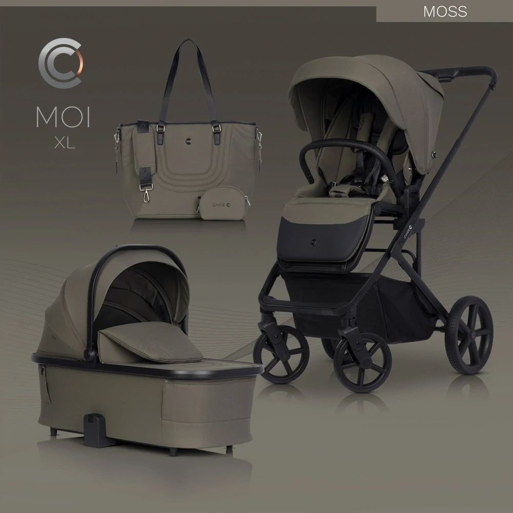 Dětský kočárek MOI XL značky CAVOE lze zakoupit jako kočárek nebo jako sadu 2 v 1 s gondolou a sadu 3 v 1 s gondolou a autosedačkou. Dedikované sedačky značky CAVOE jsou PEU, PEU PRO a AI. Díky možnosti dokoupení univerzálních adaptérů je možné na rám kočárku instalovat sedačky jiných známých světových značek (podrobný seznam sedaček je k dispozici u prodejců).