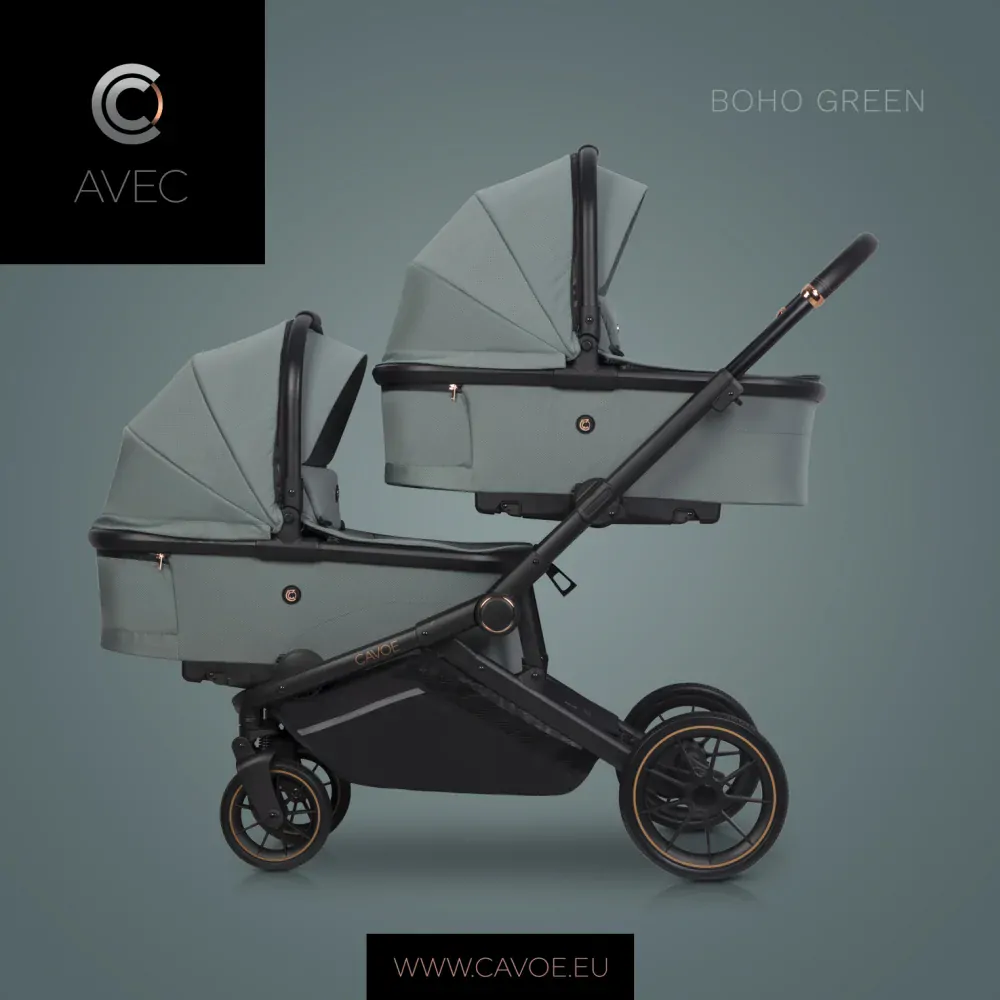 AVEC by CAVOE je tandemový kočárek pro dvě děti. Je nabízen jako kočárek se dvěma plnohodnotnými sedadly, s možností dokoupení jedné nebo dvou plnohodnotných gondol. Značka CAVOE navíc nabízí možnost dokoupení univerzálních adaptérů, pomocí kterých můžete připevnit jednu nebo dvě autosedačky CAVOE 0+ Isofix Ready nebo vybrané sedačky dalších známých světových značek včetně Maxi Cosi, Cybex a Avionaut.