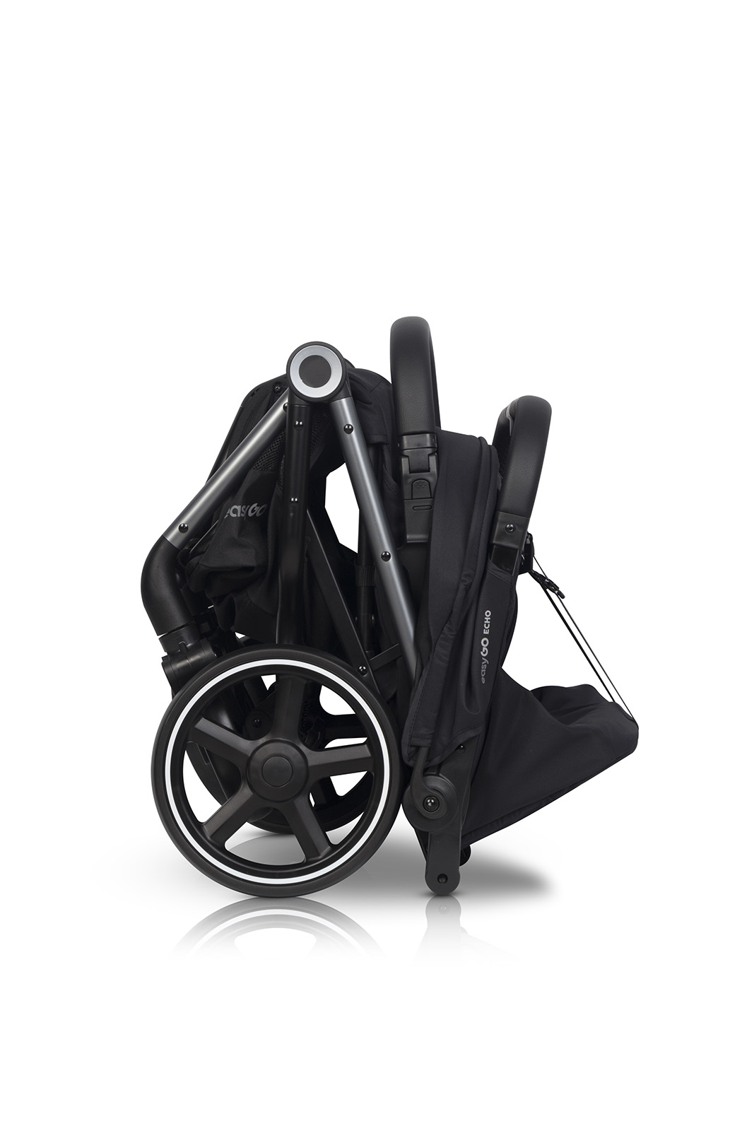 Díky systému skládání DUAL FOLD (dva body skládání) se kočárek ECHO složí na velikost malé kostky, i když po rozložení jde o velký pohodlný kočárek. Důležité je, že skládací systém lze ovládat jednou rukou a kočárek po složení sám stojí. Prvky čalounění se nedotýkají země, takže se náhodně neušpiní. Kočárek má také automatický zámek, který umožňuje pohodlné přenášení po složení.