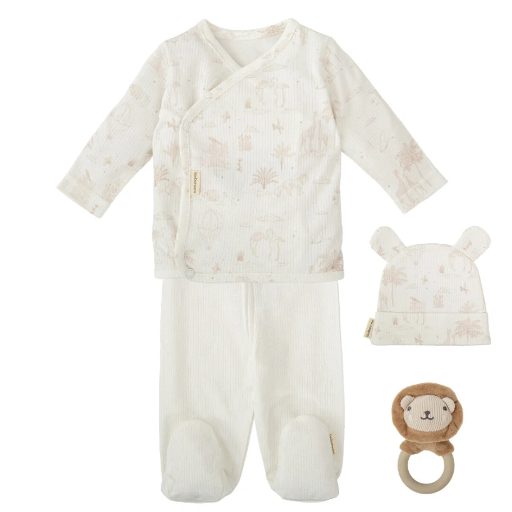 Vyrobeno z přírodních materiálů – kombinace bavlny a bambusu zajišťuje prodyšnost, jemnost a skvělou savost. Set je ideální jako první oblečení pro miminko, ale také jako krásný dárek k narození dítěte, na baby shower nebo do výbavičky.