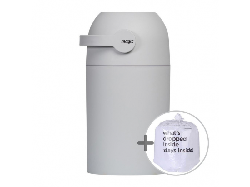 Patentovaný koš na pleny Magic poskytuje ochranu před nepříjemnými pachy a bakteriemi v dětském pokoji nebo kdekoli ve vašem interiéru. Použitou plenu snadno vložíte do koše bez jakéhokoli kontaktu s plenkami, které již v koši jsou. Otočením držadla plena propadne do koše a jeho otočením zpátky je koš opět připraven pro další použití. To vše jednou rukou, takže druhou můžete držet vaše miminko. Speciální systém těsnění udržuje zápach uvnitř koše.