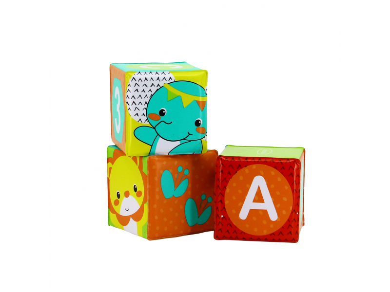 Omyvatelné kostky s krásnými ilustracemi zvířátek ve výrazných kontrastních barvách jsou vhodné pro použití ve vaně i jako první kostky pro stavění věží a společné vyprávění o zvířátkách, barvách i číslech.